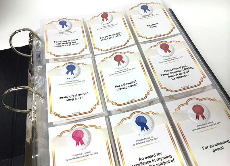 Keep your physical merit badges and awardicons in our official Writing.Com binders designed specifically for them!